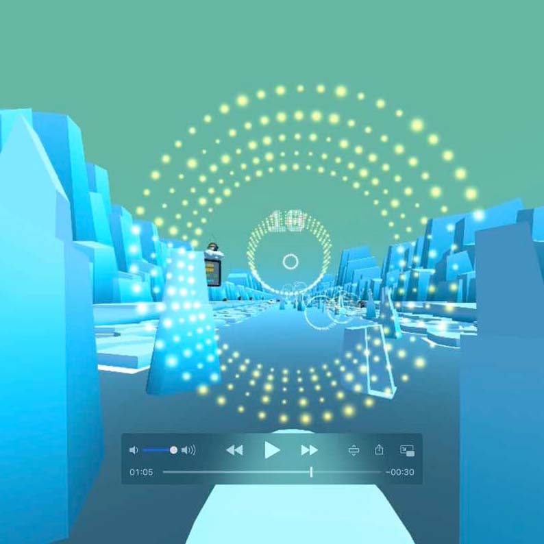 A choice of relaxation spaces set in different serene environments. Users take part in guided breathing exercises featuring relaxing imagery and calming audio. This reduces anxiety in adolescent and paediatric patients using proven breathing and sleep exercises.